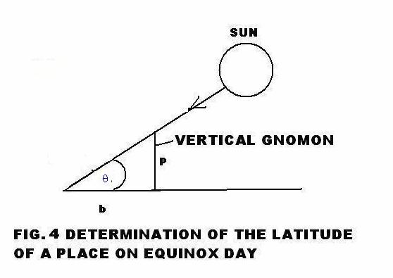 can be determined by an experiment performed at noon on the equinox day by using a vertical gnomon shown in Fig. 4. Here, we have