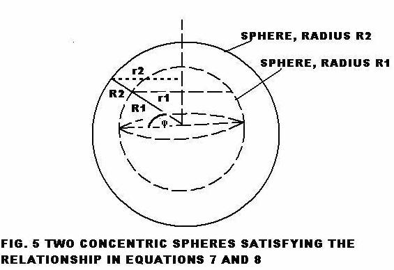 Fig. 5 which shows two concentric spheres of radii R1, and R2 respectively. For