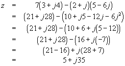 Sample Problem 2: Determine the value of z = 7(3 +j4) - (2+j)(5 - 6j)
